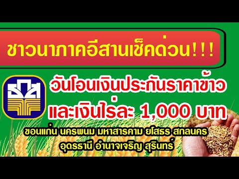 ชาวนาภาคอีสานเช็คด่วน วันโอนเงินประกันราคาข้าวและเงินช่วยเหลือไร่ละ 1,000 ใครอยู่ใน 8 จังหวัดเช็คเลย - เช็คเงินประกันข้าว